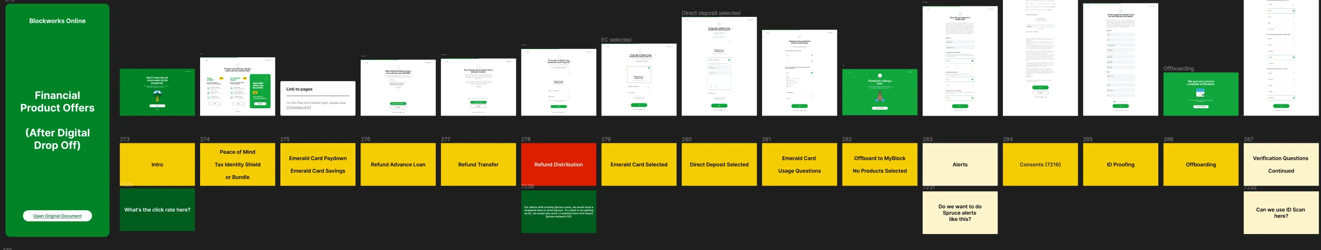 Spruce was a new banking product being introduced into H&R Block's existing tax flow. The challenge was not inventing a fresh onboarding journey from scratch. It was fitting a regulated financial offer into a live ecosystem that already spanned multiple products, handoffs, and user types.